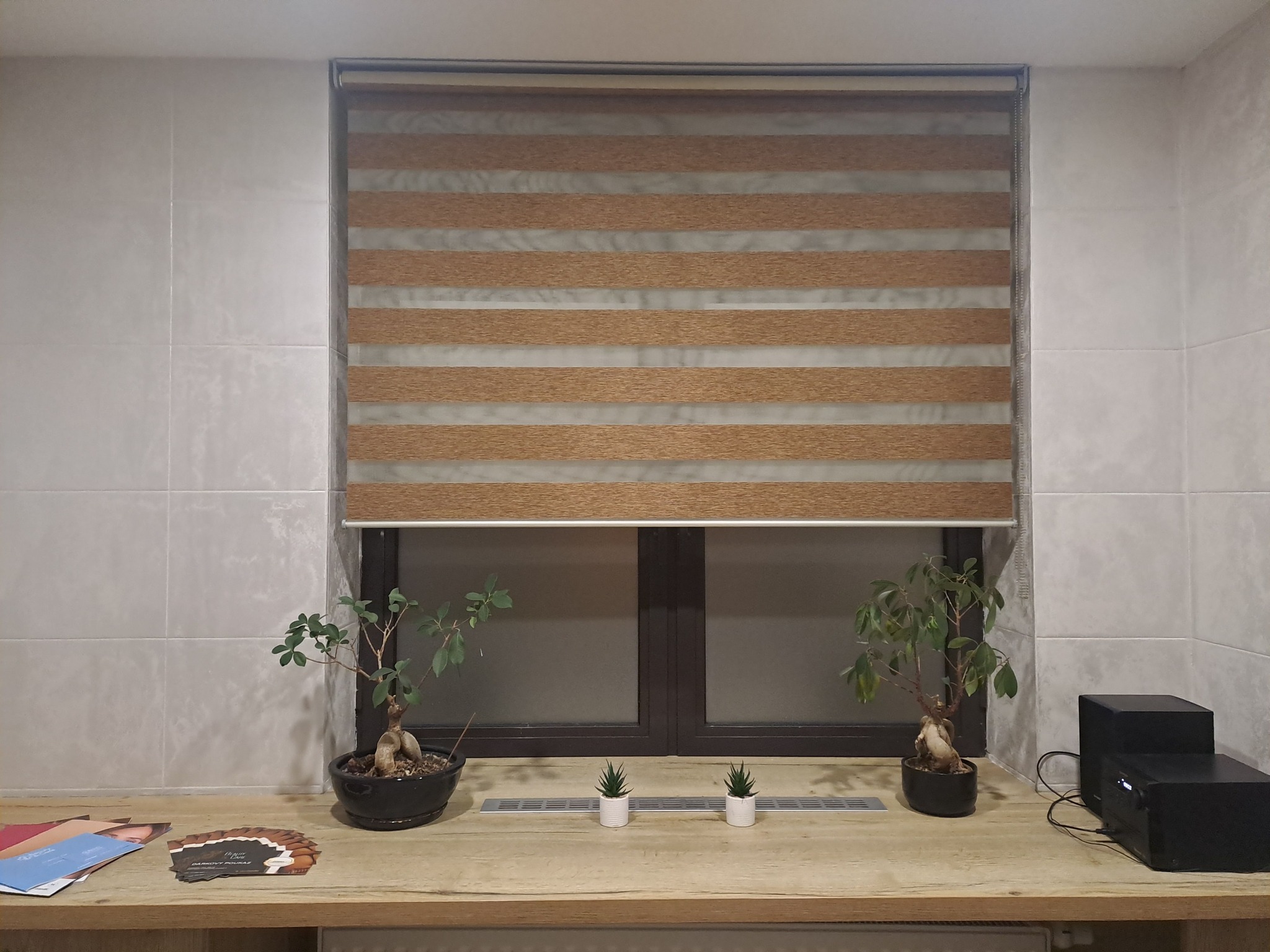 Efektivní ochrana proti slunci s průhledem ven.
